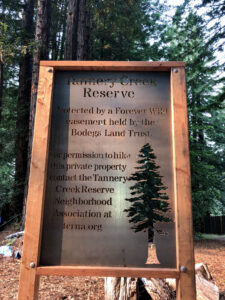Welcome to Friends of Tannery Creek Reserve, which helps to support the 187-acre parcel of redwoods, fir, oak and bay trees near Occidental, California. Since 2011, the Tannery Creek Reserve has been protected with a “forever wild easement” within the Bodega Land Trust. Since December 2022, the Tannery Creek Reserve is also owned and protected forever by Bodega Land Trust.
